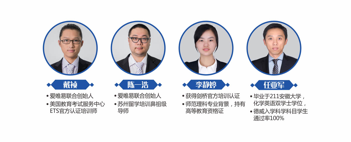苏州爱唯易教育隶属于苏州爱朗大匠文化艺术培训有限公司,由一群胸怀教育理想,梦想改变中国学生成长路径的青年学术教师组成,核心教师出自新东方中层管理,一线教师全部有5年以上丰富的国外考试辅导经验。在苏州校区成立以来的时间里我们为苏城贡献了非常多的高分学员,这源于我们强大的师资力量和教辅老师严格的全程跟盯体系。此外,每一次考试我们的老师都会亲身赴考,不断地更新教学体系和教学方法,以此来保证最及时的教研和卓有成效的辅导。