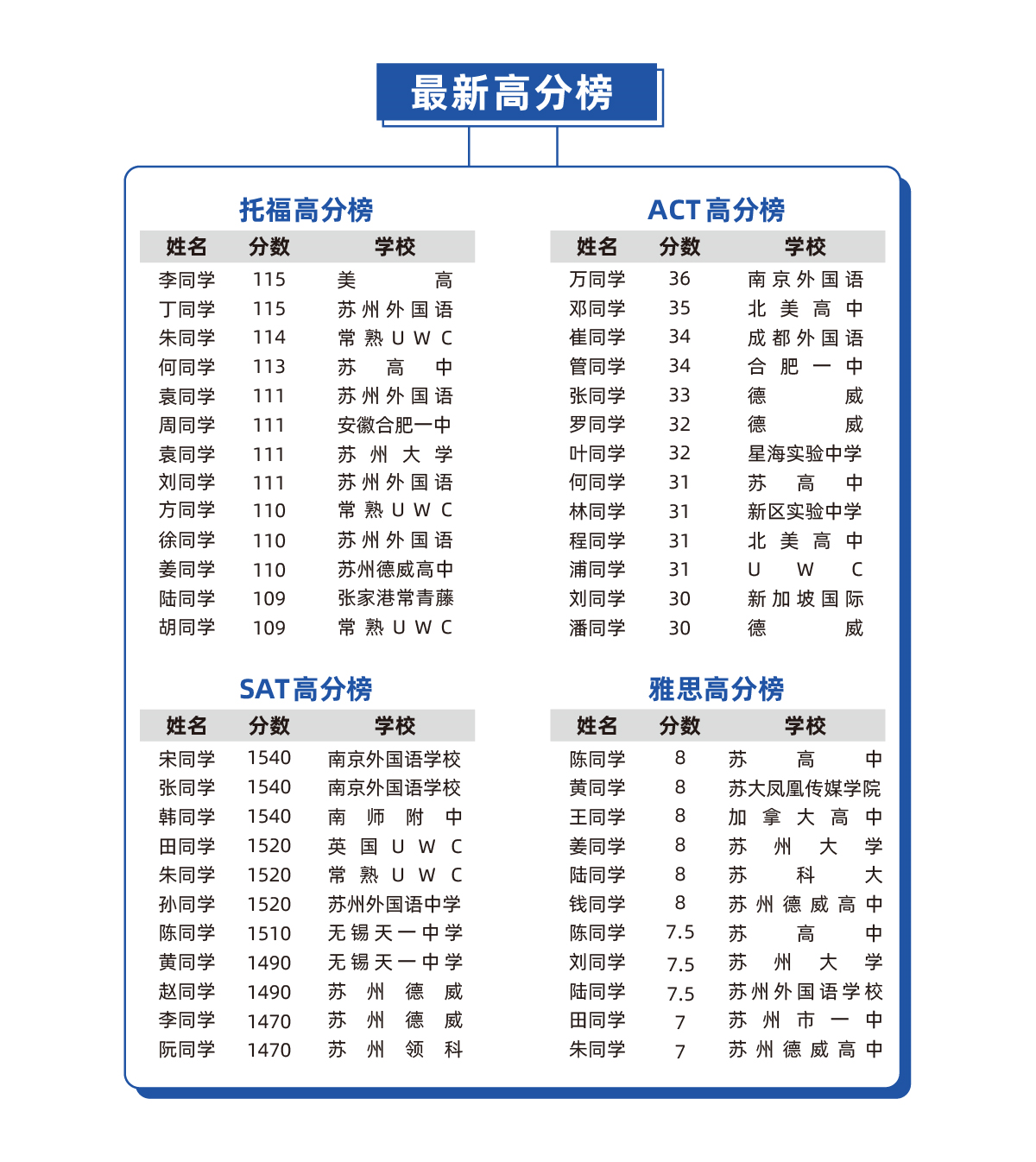 在此期间,爱唯易教育的学员们取得了非常优异的成绩,其中: